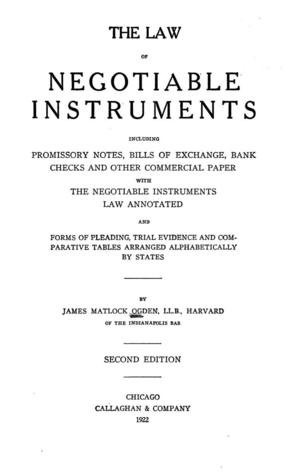 The Law of Negotiable Instruments including Promissory Notes, Bills of Exchange, Bank Checks, and other Commercial Paper. full version