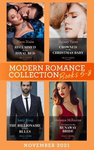 Modern Romance November 2021 Books 5-8: Reclaimed for His Royal Bed / Crowned for His Christmas Baby / The Billionaire without Rules / A Contract for His Runaway Bride full version