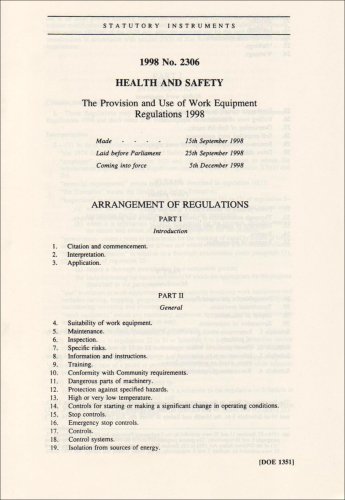 The Provision and Use of Work Equipment Regulations 1998 (Statutory Instruments: 1998: 2306) full version