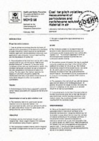 Coal Tar Pitch Volatiles: Measurement of Particulates and Cyclohexane Soluble Material in Air: Laboratory Method Using Filters and Gravimetric Estimation (MDHS) full version
