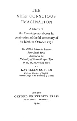 The Self-Conscious Imagination: A Study of the Coleridge notebooks in celebration of the bi-centenary of his birth 21 October 1772 full version