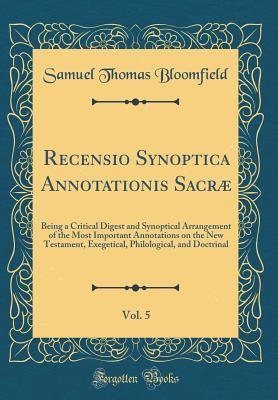 You are about to access our book library "Recensio Synoptica Annotationis Sacræ, Vol. 5: Being a Critical Digest and Synoptical Arrangement of the Most Important Annotations on the New Testament, Exegetical, Philological, and Doctrinal (Clas full version"