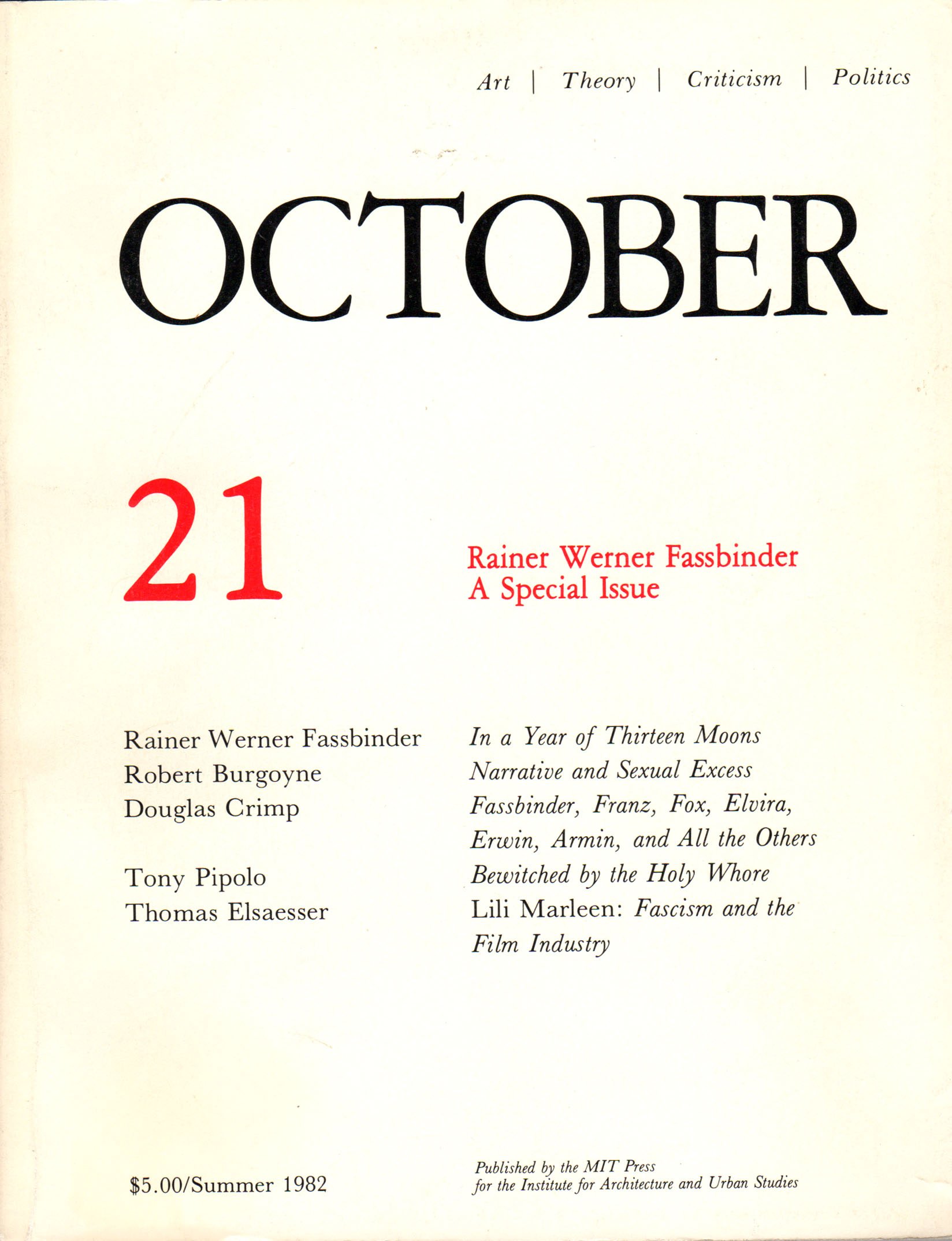 October 21: Art/ Theory/ Criticism/ Politics - Summer 1982: Rainer Werner Fassbinder - A Special Issue full version