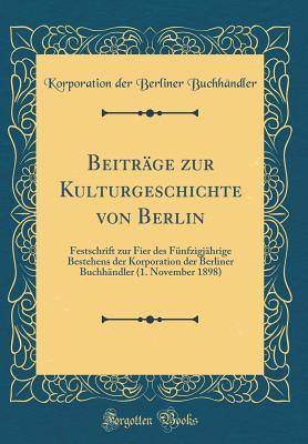 Beiträge zur Kulturgeschichte von Berlin: Festschrift zur Fier des Fünfzigjährige Bestehens der Korporation der Berliner Buchhändler (1. November 1898) (Classic Reprint) (German Edition) full version