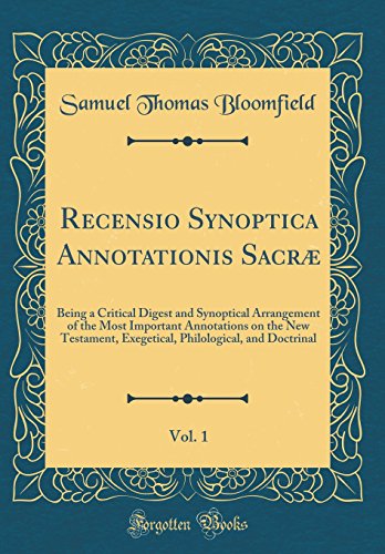 You are about to access our book library "Recensio Synoptica Annotationis Sacræ, Vol. 1: Being a Critical Digest and Synoptical Arrangement of the Most Important Annotations on the New ... Philological, and Doctrinal (Classic Reprint) full version"