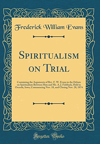 You are about to access our book library "Spiritualism on Trial: Containing the Arguments of Rev. F. W. Evans in the Debate on Spiritualism Between Him and Mr. A. J. Fishback, Held in Osceola, ... and Closing Nov. 28, 1874 (Classic Reprint) full version"