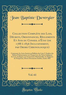 You are about to access our book library "Collection Complète des Lois, Décrets, Ordonnances, Règlements Et Avis du Conseil d'État (de 1788 à 1836 Inclusivement, par Ordre Chronologique), Vol. 61: Contenant, les Actes Insérés au Bulletin des Lois; L'Analyse des Débats Parlementaires sur Chaque Lo full version"