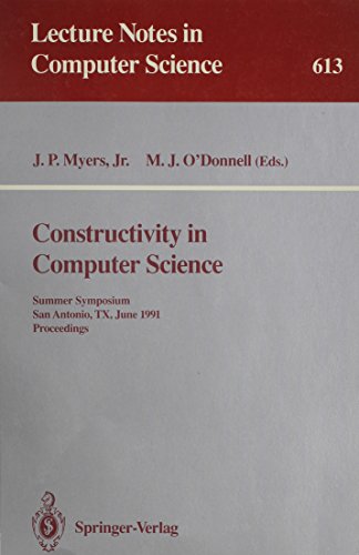 Constructivity in Computer Science: Summer Symposium, San Antonio, Tx, June 19-22, 1991, Proceedings (Lecture Notes in Computer Science) full version