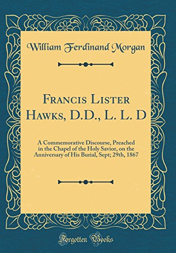 Francis Lister Hawks, D.D., L. L. D: A Commemorative Discourse, Preached in the Chapel of the Holy Savior, on the Anniversary of His Burial, Sept; 29th, 1867 (Classic Reprint) full version