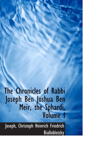 The Chronicles of Rabbi Joseph Ben Joshua Ben Meir, the Sphardi, Volume I full version