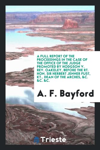 A Full Report of the Proceedings in the Case of the Office of the Judge Promoted by Hodgson v. Rev. Oakeley, Before the Rt. Hon. Sir Herbert Jenner Fust, Kt., Dean of the Arches, &c. &c. &c. full version