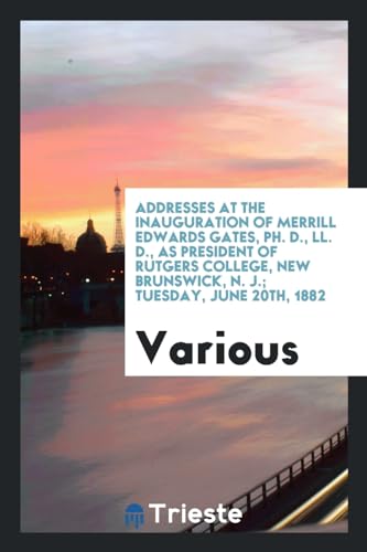 Addresses at the Inauguration of Merrill Edwards Gates, Ph. D., LL. D., As President of Rutgers college, New Brunswick, N. J.; Tuesday, June 20th, 1882 full version