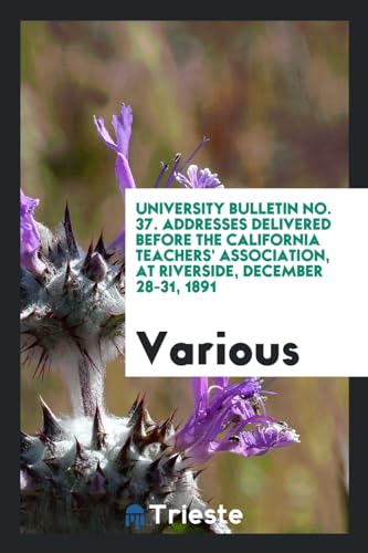 University bulletin No. 37. Addresses Delivered Before the California Teachers' Association, at riverside, December 28-31, 1891 full version