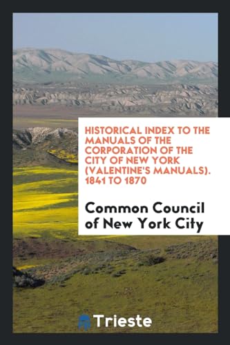 Historical Index to the Manuals of the Corporation of the City of New York (Valentine's Manuals). 1841 to 1870 full version