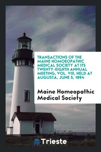 Transactions of the Maine Homoeopathic Medical Society at its Twenty-Eighth Annual Meeting, Vol. VIII, Held at Augusta, June 5, 1894 full version