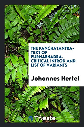 The Panchatantra-text of Purnabhadra. Critical introd. and list of variants by Johannes Hertel full version