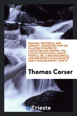 Remains, Historical and Literary, Connected with the Palatine Counties of Lancaster and Chester, Vol. LXXVII; Collectanea Anglo-Poetica: Or, a ... Catalogue of Early English Poetry. Part IV full version
