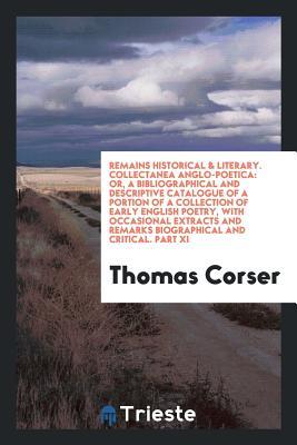 Remains Historical & Literary. Collectanea Anglo-Poetica: Or, a Bibliographical and Descriptive Catalogue of a Portion of a Collection of Early ... Remarks Biographical and Critical. Part XI full version