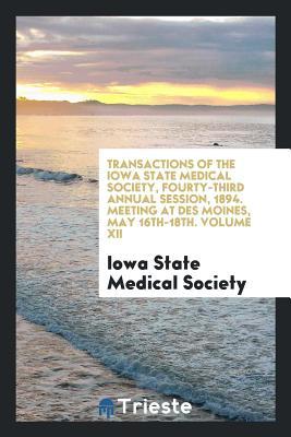 Transactions of the Iowa State Medical Society, Fourty-Third Annual Session, 1894. Meeting at Des Moines, May 16th-18th. Volume XII full version