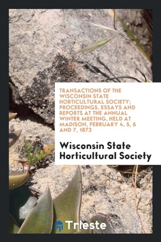 Transactions of the Wisconsin State Horticultural Society; Proceedings, Essays and Reports at the Annual Winter Meeting, Held at Madison, February 4, 5, 6 and 7, 1873 full version