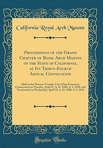 You are about to access our book library "Proceedings of the Grand Chapter of Royal Arch Masons of the State of California, at Its Thirty-Fourth Annual Convocation: Held at the Masonic Temple, ... 1888, A. I. 2418, and Terminated on Wednesd full version"