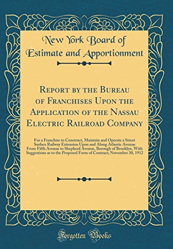 You are about to access our book library "Report by the Bureau of Franchises Upon the Application of the Nassau Electric Railroad Company: For a Franchise to Construct, Maintain and Operate a ... From Fifth Avenue to Shepherd Avenue, Bor full version"