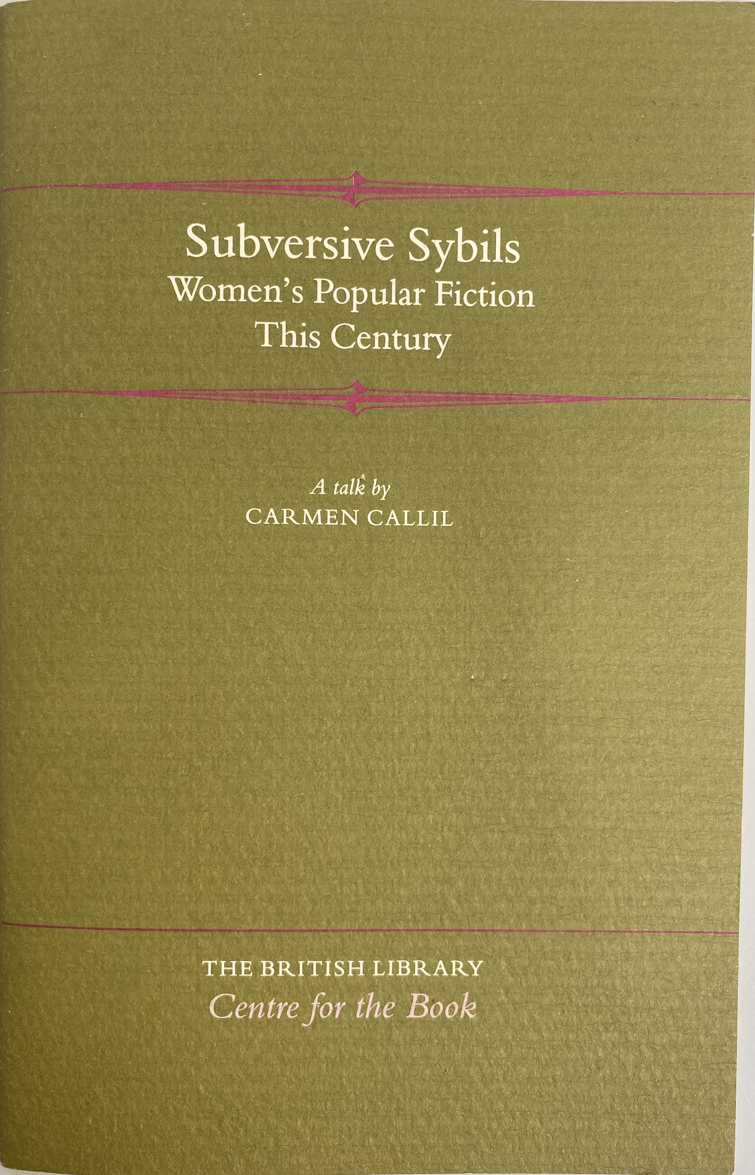 Subversive Sybils: Women's popular fiction this century : a talk full version