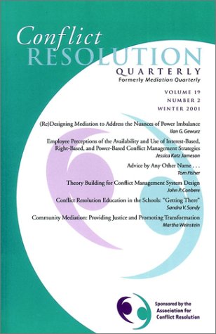 Conflict Resolution Quarterly (Formerly MEDIATION QUARTERLY) Vol 19, #2, Winter 2001 full version