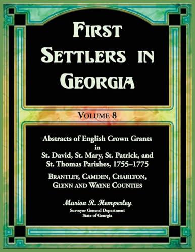 First Settlers in Georgia, Volume 8, Abstracts of English Crown Grants in St. David's, St. Mary's, St. Patrick's, and St. Thomas's Parishes, ... Camden, Charlton, Glynn, and Wayne Counties full version
