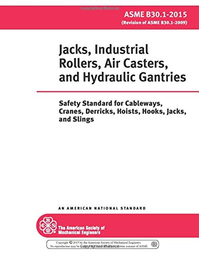 ASME B30.1-2015: Jacks, Industrial Rollers, Air Casters, and Hydraulic Gantries: Safety Standard for Cableways, Cranes, Derricks, Hoists, Hooks, Jacks, and Slings full version
