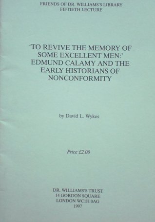 To Revive the Memory of Some Excellent Men: Edmund Calamy and the Early Historians of Nonconformity full version