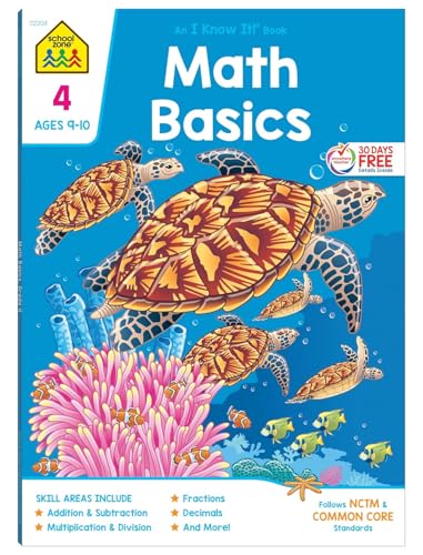School Zone Math Basics 4 Workbook: 64 Pages, 4th Grade, Multiplication, Division Symmetry, Decimals, Equivalent Fractions, Ages 9-10 (I Know It! Book Series) full version