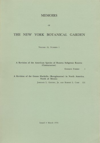 You are about to access our book library "A Revision of the American Species of Rourea Subgenus Rourea (Connaraceae) with A Revision of the Genus Hackelia (Boraginaceae) in North America, North of Mexico (Memoirs of The NYBG Vol. 26, pt. 1) full version"