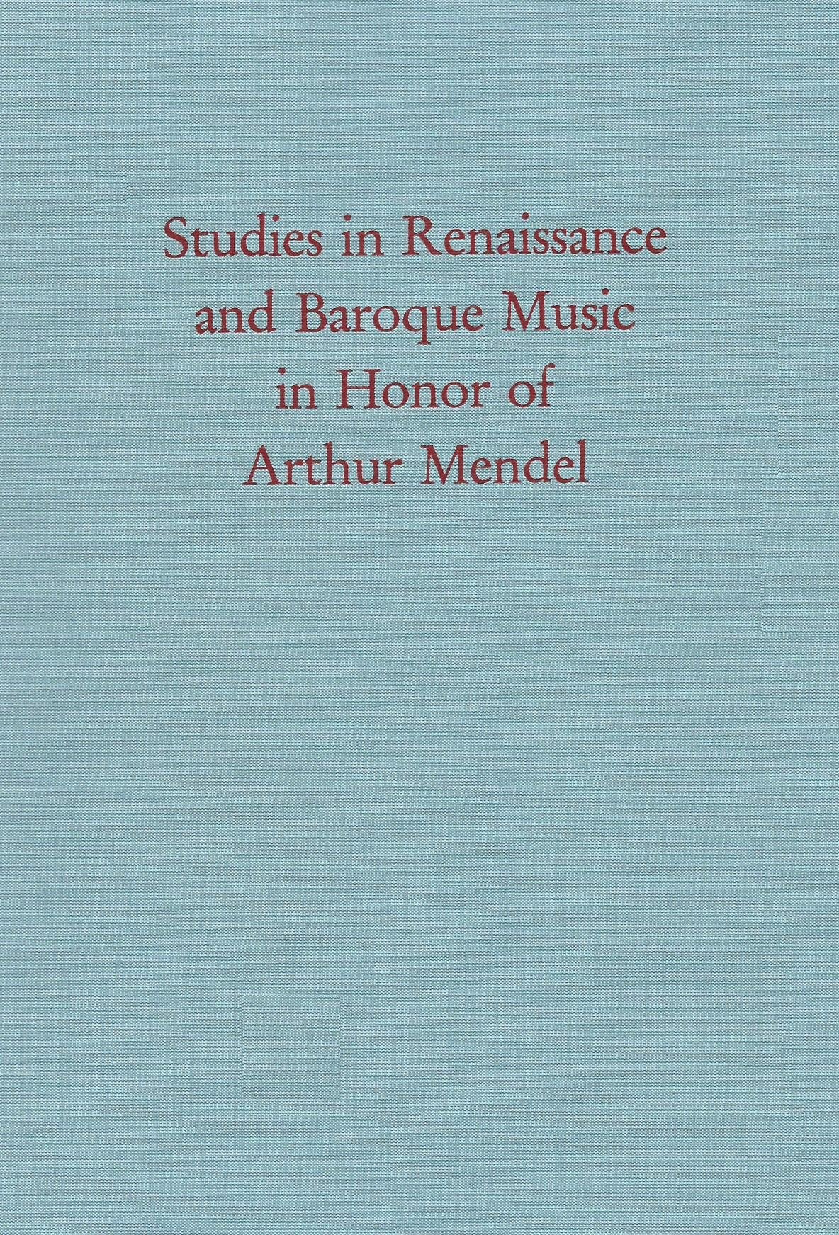 Studies in Renaissance and Baroque music in honor of Arthur Mendel full version