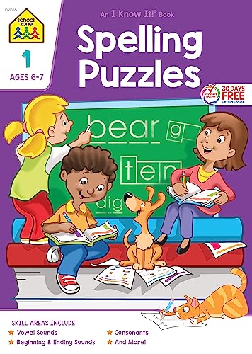School Zone Spelling Puzzles 1 Workbook: 32 Pages, 1st Grade, Word Recognition, Pronunciation, Combination Sounds, Ages 6 to 7 (I Know It! Book Series) full version