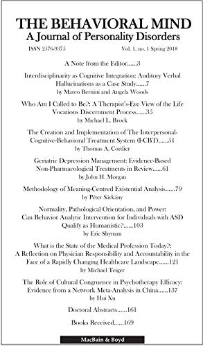 The Behavioral Mind: A Journal of Personality Disorders (Vol. 1, no. 1 Spring 2018) full version