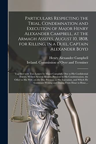 You are about to access our book library "Particulars Respecting the Trial, Condemnation and Execution of Major Henry Alexander Campbell, at the Armagh Assizes, August 10, 1808, for Killing, ... Two Letters by Major Campbell, One to His... full version"