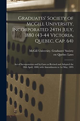 You are about to access our book library "Graduates' Society of McGill University, Incorporated 24th July, 1880 (43-44 Victoria, Quebec, Cap. 64) [microform]: Act of Incorporation and By-laws ... April, 1888, With Amendments to 1st May, 1895 full version"