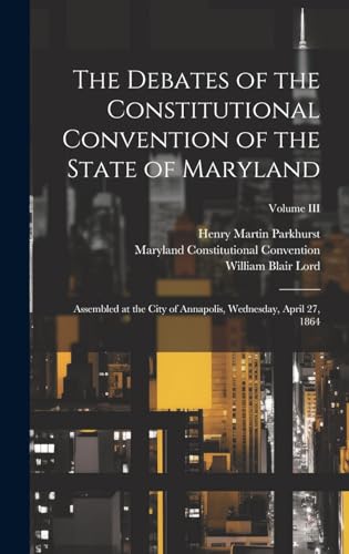 The Debates of the Constitutional Convention of the State of Maryland: Assembled at the City of Annapolis, Wednesday, April 27, 1864; Volume III full version