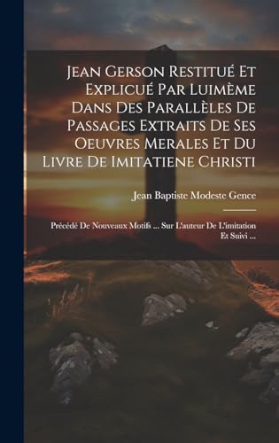 You are about to access our book library "Jean Gerson Restitué Et Explicué Par Luimème Dans Des Parallèles De Passages Extraits De Ses Oeuvres Merales Et Du Livre De Imitatiene Christi: ... De L'imitation Et Suivi ... (French Edition) full version"