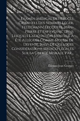 You are about to access our book library "Examen Médical Des Procès Criminels Des Nommés Léger, Feldtmann, Lecouffe, Jean-pierre Et Papavoine, Dans Lesquels L'aliénation Mentale A Été Alléguée ... La Liberté Morale, Par... (French Edition) full version"