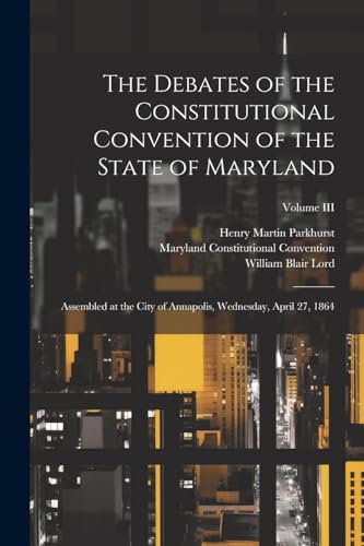 The Debates of the Constitutional Convention of the State of Maryland: Assembled at the City of Annapolis, Wednesday, April 27, 1864; Volume III full version
