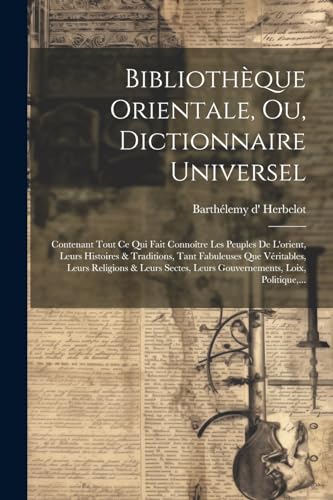 Bibliothèque Orientale, Ou, Dictionnaire Universel: Contenant Tout Ce Qui Fait Connoître Les Peuples De L'orient, Leurs Histoires & Traditions, Tant ... Loix, Politique, ... (French Edition) full version