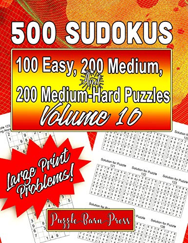 500 Sudokus: 100 Easy, 200 Medium and 200 Medium-Hard Puzzles with Large Print Problems, Volume 10 full version