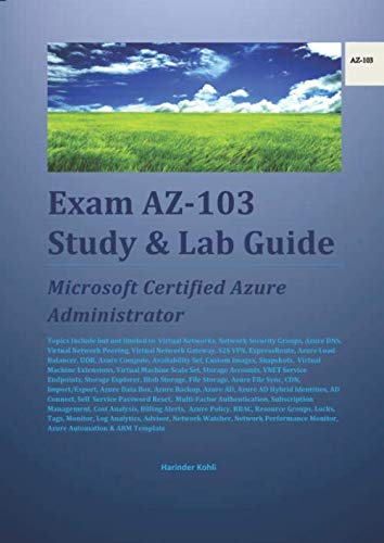 Exam AZ-103 Study & Lab Guide: Microsoft Certified Azure Administrator full version