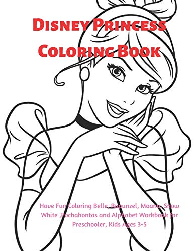 Disney Princess Coloring Book: Have Fun Coloring Belle, Rapunzel, Moana, Snow White, Pochahontas and Alphabet Workbook for Preschooler, Kids Ages 3-5. full version