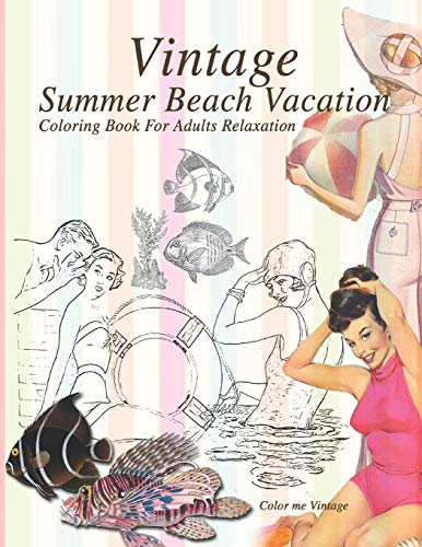 Coloring vintage summer beach vacation: Coloring book for adults relaxation full version