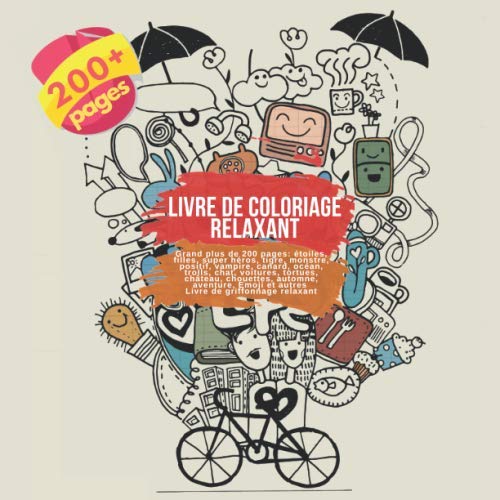 Livre de coloriage relaxant. Grand plus de 200 pages: étoiles, filles, super héros, tigre, monstre, positif, vampire, canard, océan, trolls, chat, ... de griffonnage relaxant (French Edition) full version