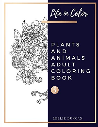 PLANTS AND ANIMALS ADULT COLORING BOOK (Book 5): Plants and Animals Coloring Book for Adults - 40+ Premium Coloring Patterns (Life in Color Series) full version