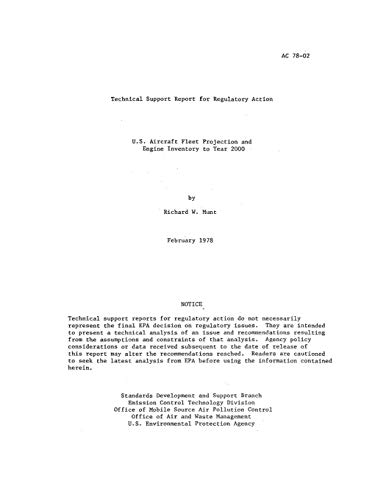 Technical Support Report for Regulatory Action: US Aircraft Fleet Projection and Engine Inventory to Year 2000 full version